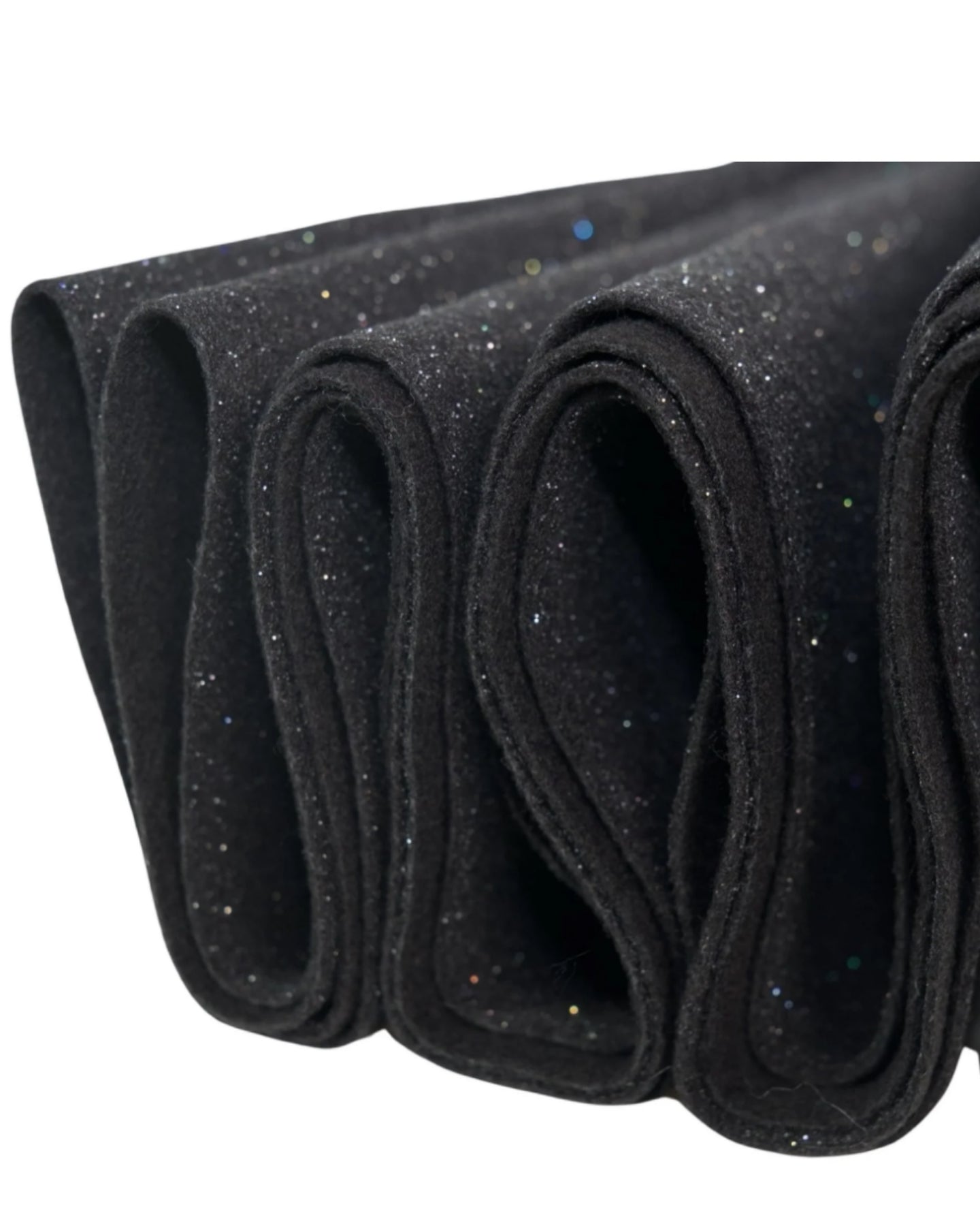 FabricLA’s glitter felt fabric combines the stable structure of felt with a bonded shimmer finish that minimizes shedding and maintains a clean surface. This 60" wide felt fabric features acrylic construction with integrated glitter for a reflective, durable material suitable for a range of applications where visual impact and performance matter.